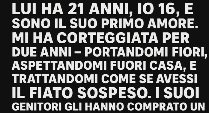 Lui ha 21 anni, io 16, e sono il suo primo amore. Mi ha corteggiata per due anni: portandomi fiori, aspettandomi fuori casa e sembrando quasi perdere il respiro ogni volta che ero vicina. I suoi genitori gli hanno comprato un appartamento per potermi sposare, e io stavo seriamente considerando di dire di sì.