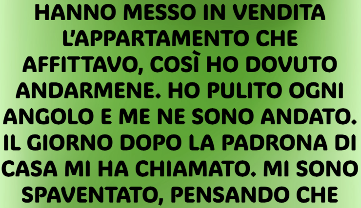 Hanno messo in vendita l’appartamento che affittavo, così ho dovuto andarmene. Ho pulito ogni angolo e sono uscito. Il giorno dopo la padrona di casa mi ha chiamato. Mi sono spaventato, pensando che avessero trovato qualcosa di rotto. Invece ha iniziato a ringraziarmi per come avevo lasciato tutto pulito. E poi, all’improvviso, mi ha detto: