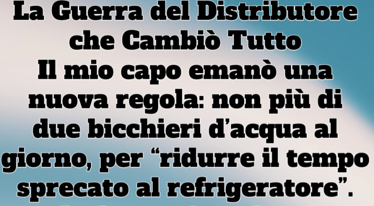Il mio capo emanò una nuova regola: non più di due bicchieri d’acqua al giorno, per “ridurre il tempo sprecato al refrigeratore”.
