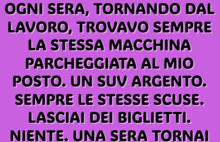Quando tornai a casa, il SUV argento era di nuovo lì. Al mio posto.