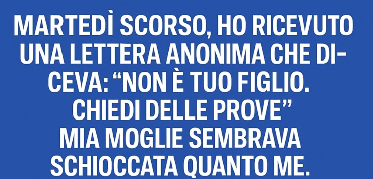 Martedì scorso ho ricevuto una lettera anonima con scritto: “Non è tuo figlio. Chiedi la prova.” Mia moglie sembrava sconvolta quanto me.