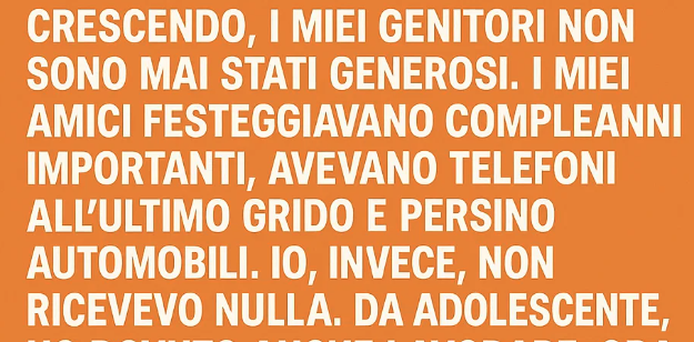 Sono cresciuto con genitori che non erano dati a gesti di generosità. I miei amici festeggiavano compleanni importanti, possedevano telefoni all’avanguardia e automobili; io non avevo nulla di tutto ciò. Da adolescente ho dovuto lavorare per conto mio. Ora sono all’università e sommerso da un debito studentesco enorme. Alla fine, i miei genitori hanno accettato che potessi dormire da loro qualche notte.