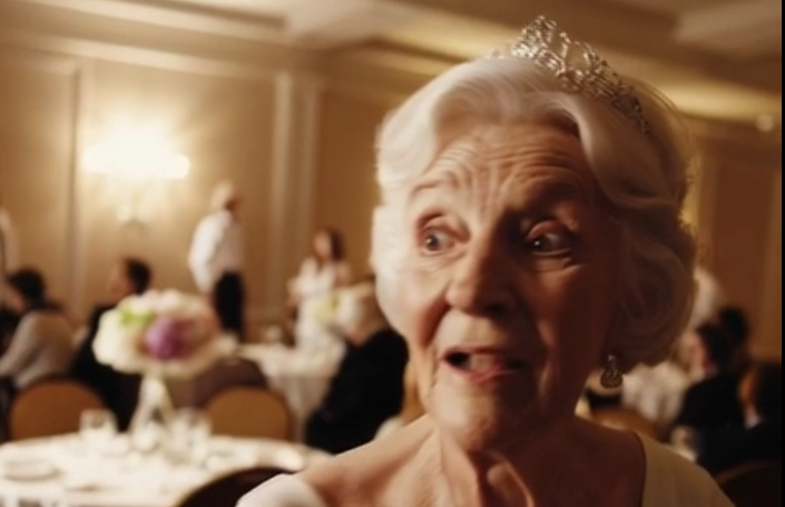 Pochi istanti dopo, è arrivata Dorothy, raggiante: tiara scintillante, strass, e uno strascico lungo da cattedrale. Ma non appena ha fatto il suo ingresso trionfale nella sala… si è bloccata.