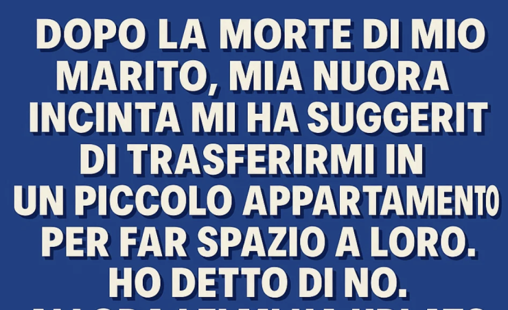 La mia casa ha 4 camere da letto. Dopo la morte di mio marito, mia nuora incinta mi ha suggerito di trasferirmi in un piccolo appartamento per fare spazio a loro. Ho detto di no. Allora lei mi ha urlato in faccia: “Fallo per i tuoi nipoti”. Ho finto di essere d’accordo, ma senza dirlo a nessuno, ho iniziato in silenzio a elaborare un piano.