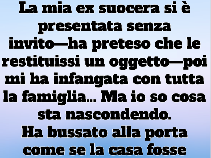 Ha bussato alla porta come se la casa fosse ancora sua. Non ha nemmeno aspettato che rispondessi—è entrata come se fosse ancora la casa di suo figlio.
