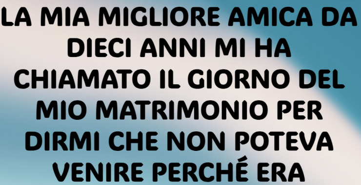 La mia migliore amica da dieci anni mi ha chiamata il giorno del mio matrimonio per dirmi che non sarebbe venuta perché era troppo triste per via del suo recente divorzio.