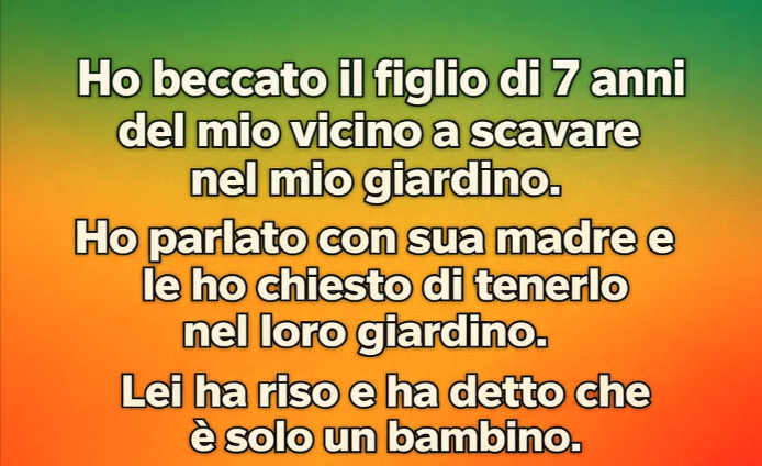 Lei ha riso. «È solo un bambino!» ha detto, come se fosse una scusa universale.
