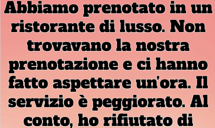 Abbiamo prenotato in un ristorante di lusso. Non trovavano il nostro nome e ci hanno fatto aspettare un’ora. Il servizio è peggiorato. Al conto ho rifiutato la mancia ed è uscito. Ho postato l’accaduto sui social, ed è diventato virale. Il giorno dopo ho ricevuto un messaggio minaccioso dal presunto manager del ristorante.