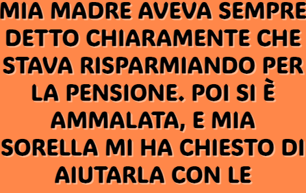 Mia madre aveva sempre detto chiaramente che stava risparmiando per la pensione. Poi si è ammalata, e mia sorella mi ha chiesto di aiutarla con le bollette. Ho detto di no.