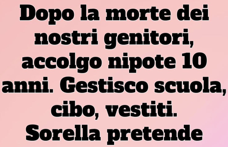 Dopo morte genitori, accolgo nipote 10 anni. Gestisco scuola, cibo, vestiti. Sorella pretende pure figlio adolescente. Rifiuto, urla: «Te ne pentirai!». Sangue bolle quando scopro lascia vicino e sparisce settimane.