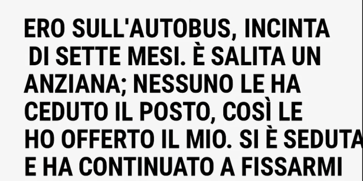 Salì un’anziana; nessuno le cedette il posto, così le offrii il mio.