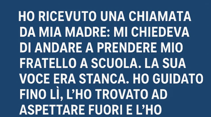 Ho ricevuto una chiamata da mia madre: mi chiedeva di andare a prendere mio fratello a scuola. La sua voce era stanca. Ho guidato fino lì, l’ho trovato ad aspettare fuori, e l’ho portato a casa.