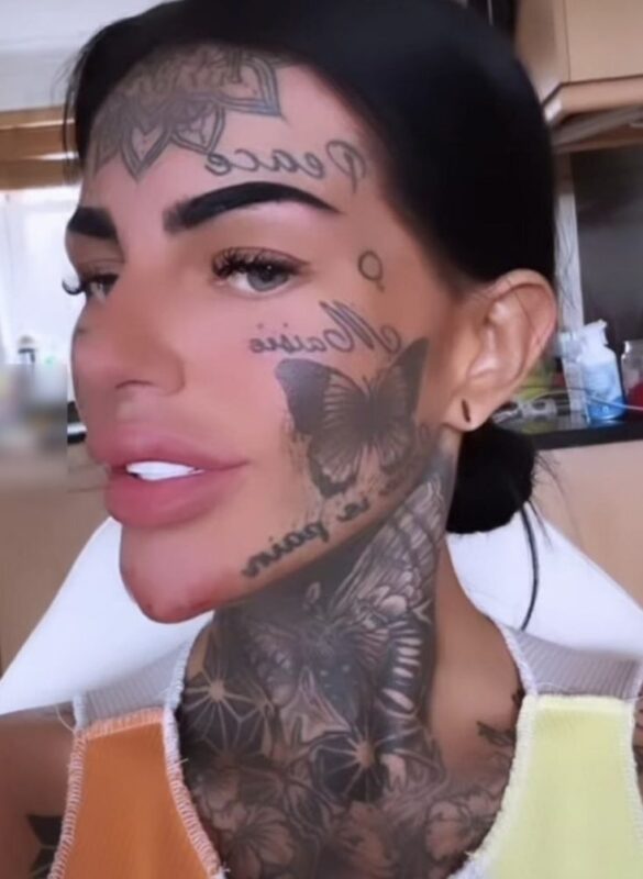 Il volto di questa giovane mamma è ora ricoperto di tatuaggi, trasformando il suo aspetto in quello di una “cattiva dei cartoni animati”.