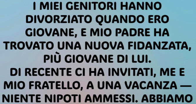 Di recente ci ha invitati — me e mio fratello — a una vacanza, ma senza nipoti. Abbiamo rifiutato, e pensavamo che la cosa fosse finita lì… finché la sua fidanzata non ha detto qualcosa che ha peggiorato tutto: