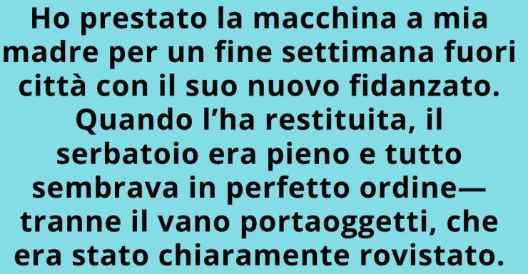 Avevo prestato la macchina a mia madre per un weekend fuori città con il suo nuovo compagno. Quando me l’ha restituita, il serbatoio era pieno e tutto sembrava perfettamente in ordine—tranne il vano portaoggetti, che era stato chiaramente rovistato. Le ho chiesto se avesse trovato ciò che cercava. Ha sbattuto le palpebre e ha detto: «Hai tenuto quella foto?» Il cuore mi è crollato nello stomaco quando ha aggiunto: «Pensavo di aver bruciato tutte le copie.»