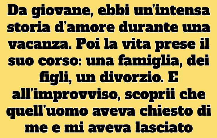 Quell’estate sembrava un sogno. Parlare con lui era come conoscerlo da sempre, baciarlo come se il tempo non potesse separarci, amarci come se il mondo fosse sempre in estate. Ma allora le distanze erano reali. Niente smartphone, niente messaggi istantanei. Promettemmo di scriverci. Lo feci, una volta. Lui rispose. Poi la vita intervenne: un lavoro, le bollette, un fidanzamento improvviso, un matrimonio, due figli—e l’amore finì in un angolo polveroso della memoria.
