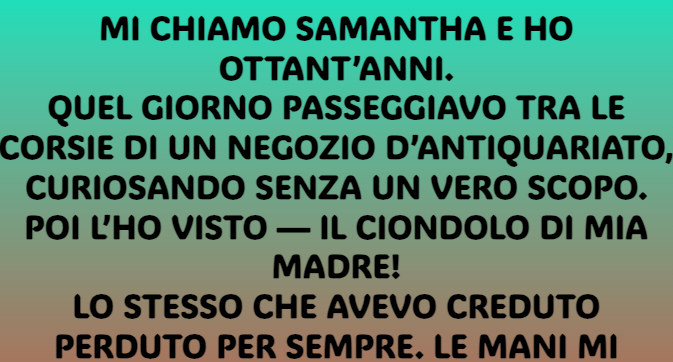 Samantha prese in mano il ciondolo, riconoscendo ogni piccolo dettaglio. Le tornarono alla mente le immagini di sua madre che lo portava con orgoglio nei giorni più sereni, prima che le difficoltà economiche costringessero la famiglia a venderlo.