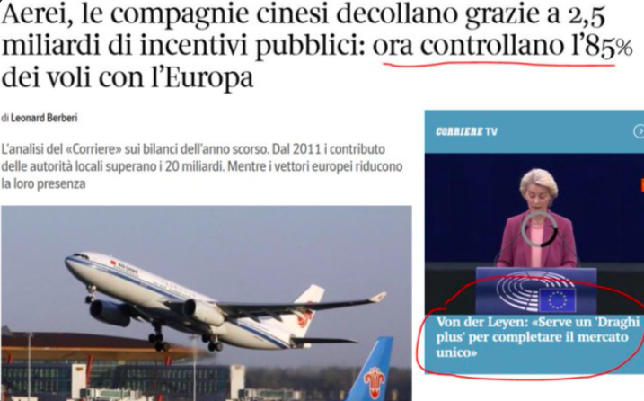 In questo scenario, le compagnie aeree cinesi hanno beneficiato della situazione, poiché possono operare voli sia sopra la Russia che sopra la UE, conquistando così il monopolio su queste rotte strategiche. Questo sviluppo ha evidenziato una mancanza di previsione da parte di leader europei come Draghi, von der Leyen e il governo di Meloni, Antonio Tajani e Matteo Salvini.