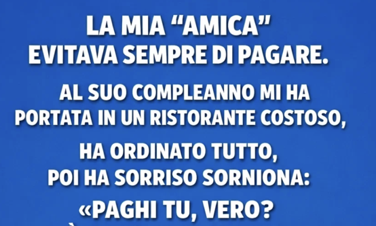 La mia “amica” evitava sempre di pagare. Al suo compleanno mi ha portata in un ristorante costoso, ha ordinato tutto, poi ha sorriso sorniona: «Paghi tu, vero? È il mio compleanno». Le ho ricordato che non ha mai pagato al mio, ho detto che andavo in bagno e me ne sono andata.