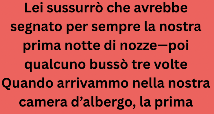 Quando arrivammo nella nostra camera d’albergo, la prima notte da marito e moglie, mia moglie mi sussurrò piano: “Chiudi gli occhi, ho una sorpresa che segnerà per sempre questo giorno.”