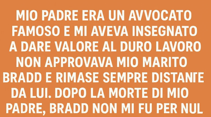 Quando papà morì, fu un colpo durissimo. Negli anni ci eravamo avvicinati, anche se Bradd cercava di mantenere il rapporto superficiale. Il funerale fu intimo: pochi amici e alcuni colleghi dello studio legale. Bradd non pronunciò quasi parola, tranne quella sera, prima di andare a dormire, quando mi chiese: