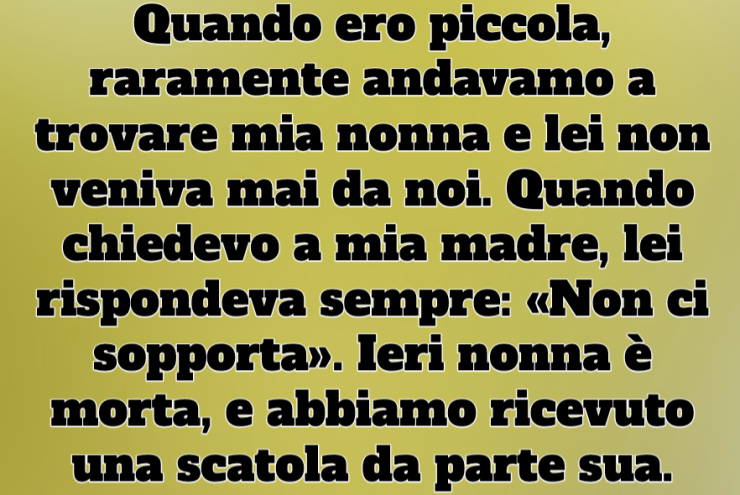 Quando ero piccola, raramente andavamo a trovare mia nonna e lei non veniva mai da noi. Quando chiedevo a mia madre, lei rispondeva sempre: «Non ci sopporta». Ieri nonna è morta, e abbiamo ricevuto una scatola da parte sua. Quando l’ho aperta, mi sono bloccata. Era piena di migliaia di ricevute, fatture mediche e assegni annullati, meticolosamente catalogati, organizzati e incrociati, coprendo gli ultimi trent’anni.