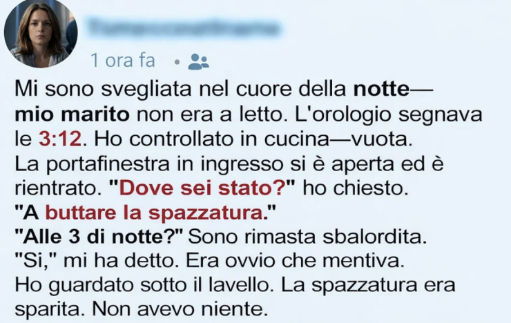 Dopo ventidue anni di matrimonio, mio marito aveva improvvisamente iniziato a portare fuori la spazzatura… alle tre del mattino.