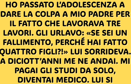 Ho passato l’adolescenza a dare la colpa a mio padre per il fatto che lavorava tre lavori. Gli urlavo: «Se sei un fallimento, perché hai fatto quattro figli?!» Lui sorrideva. A diciott’anni me ne andai. Mi pagai gli studi da solo, diventai medico. Lui si ammalò, ma ero troppo occupato per andarlo a trovare. Il giorno in cui morì, ricevetti una scatola con un biglietto: “Adesso capirai.” Mi bloccai. Dentro, c’era la verità che aveva nascosto per tutta la mia vita.
