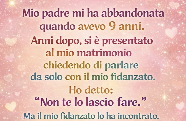 Mio padre se ne andò quando avevo nove anni. Anni dopo, si presentò al mio matrimonio chiedendo di parlare da solo con il mio fidanzato. Gli dissi: «Non hai il diritto di farlo». Ma il mio fidanzato lo incontrò comunque. Quando tornò, aveva il volto pallido e mi disse: «Dobbiamo parlare… subito». Da quel momento, capii che nulla di quel giorno sarebbe stato come avevo immaginato.