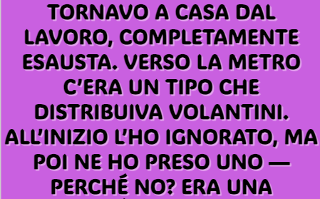 Ho infilato il volantino nella borsa e ho proseguito. Quella sera non ci ho più pensato. Ho cenato, scrollato sui social e mi sono addormentata in mezzo a un video.