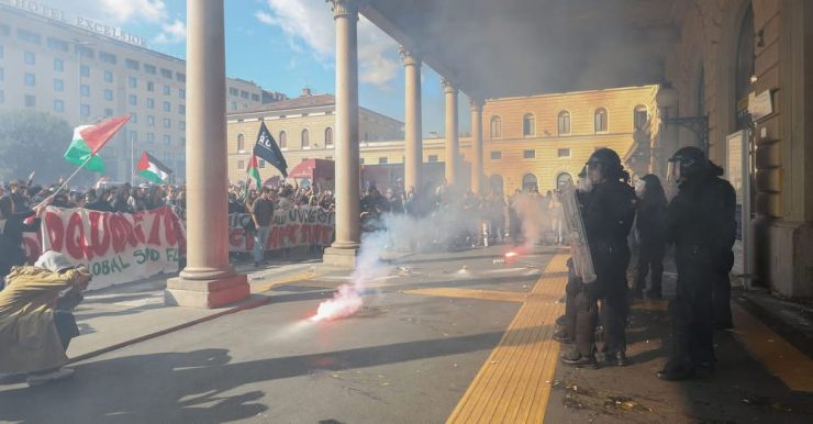 Nel corso della serata, dopo il grande corteo, un gruppo di attivisti si è distaccato dalla manifestazione principale e si è diretto verso la stazione, che era stata chiusa al traffico. In risposta, le forze dell’ordine hanno utilizzato lacrimogeni per disperdere i manifestanti, mentre alcuni di questi hanno iniziato a lanciare oggetti contro gli agenti, creando una situazione di caos e tensione.