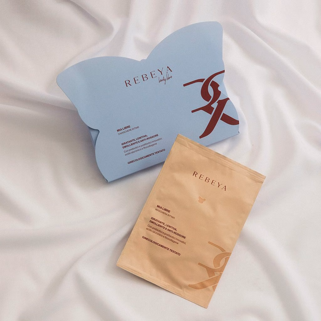 La maschera Mia Libre è stata pensata per prendersi cura della zona vulvare femminile, offrendo idratazione, sollievo e migliorando il comfort della pelle. Ogni scatola del prodotto contiene tre maschere, ideali per seguire un ciclo completo di trattamento. La confezione, dal design elegante e minimalista, è bianca con scritte bordeaux e ha una forma che richiama una farfalla, elemento che si ritrova anche nel design della maschera stessa.