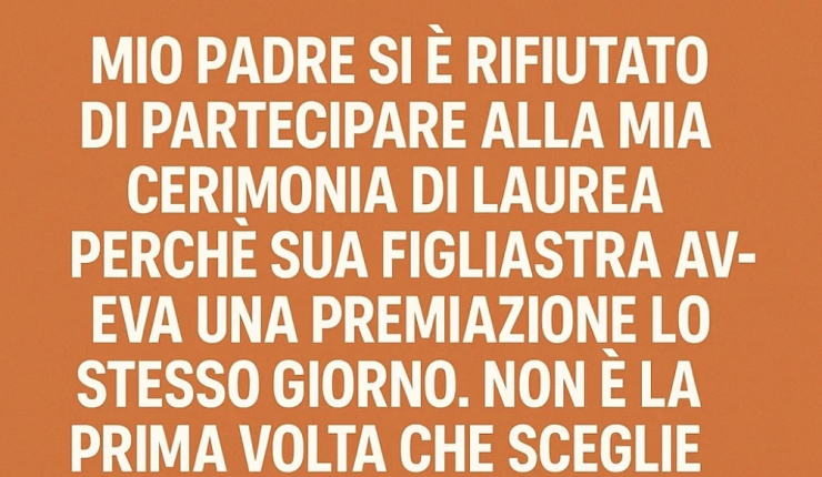 La verità è che non si trattava solo della laurea. Quello è stato solo l’ultimo colpo, la goccia che ha fatto traboccare un vaso pieno di delusioni. Mio padre si è risposato quando avevo dodici anni. Ricordo ancora benissimo quanto rapidamente la sua attenzione si spostò altrove. All’inizio cercavo di convincermi che fosse solo una mia impressione, che magari per lui era difficile gestire due famiglie. Ma col tempo è diventato evidente: non ero più una priorità.