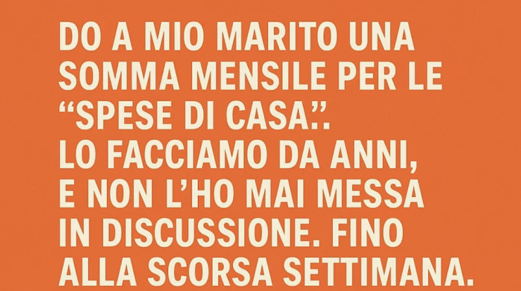 Quelle parole mi ronzavano in testa da giorni. Non sono tipo da ficcanaso. Mi sono sempre vantata di essere una moglie tranquilla. Avevamo deciso subito che ogni mese avrei trasferito 1800 dollari sul suo conto per pagare bollette, cibo e varie. Era una cosa pratica. Lui lavorava come freelance e aveva più tempo per le commissioni. Io avevo un lavoro stabile con uno stipendio fisso.