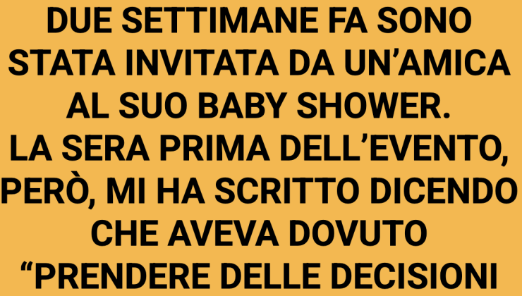 “Mi dispiace tanto… ho dovuto prendere decisioni difficili e devo disinvitarti dal baby shower. Spero tu capisca. È la cosa migliore, per ora.”