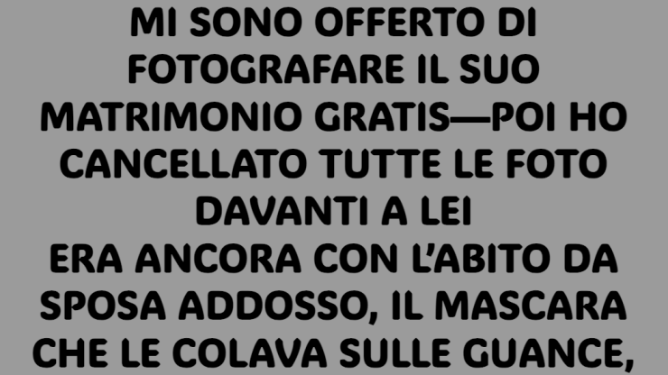 Era ancora con l’abito da sposa addosso, il mascara che le colava sulle guance, quando cliccai su “Elimina Tutto” proprio davanti a lei. Non dissi una parola. Lasciai semplicemente che lo schermo diventasse nero.