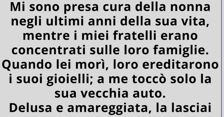 Quando morì, loro ereditarono i suoi gioielli; a me toccò solo la sua vecchia macchina.