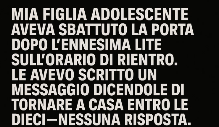 Mia figlia adolescente aveva sbattuto la porta dopo l’ennesimo litigio sull’orario di rientro. Le avevo mandato un messaggio: “Torna a casa entro le dieci”—nessuna risposta. Alle 00:43 il telefono squillò. Una voce tremante disse:
