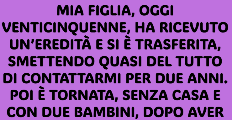 Mia figlia, oggi venticinquenne, ha ereditato una somma importante e si è trasferita, quasi senza più chiamarmi per due anni. Poi è tornata, senza un tetto e con due bambini, dopo aver sperperato tutto. L’ho aiutata, ha vissuto con noi per tutto questo tempo. Ma ora mi ha detto che aveva una sorpresa per me e, con mio enorme stupore, mi ha consegnato una busta manila e mi ha sussurrato: «Adesso tocca a te, mamma».