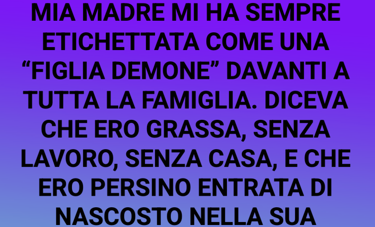 Mia madre mi ha sempre etichettata come una “figlia demone” davanti a tutta la famiglia. Diceva che ero grassa, senza lavoro, senza casa, e che avevo persino fatto irruzione nella sua abitazione. Qualche giorno fa, durante una riunione di famiglia, il mio ragazzo si è alzato all’improvviso e ha detto: