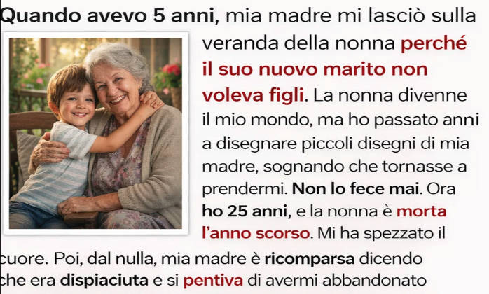 Ma la bambina di cinque anni dentro di me — quella che disegnava la sua mamma sognando il suo ritorno — sussurrò sì.