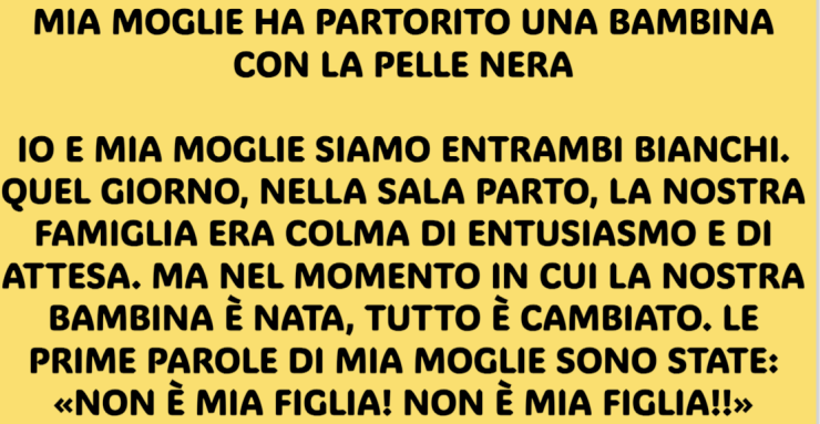 Io e mia moglie siamo entrambi bianchi. Quel giorno, nella sala parto, la nostra famiglia era colma di entusiasmo e di attesa. Ma nel momento in cui la nostra bambina è nata, tutto è cambiato. Le prime parole di mia moglie sono state:
