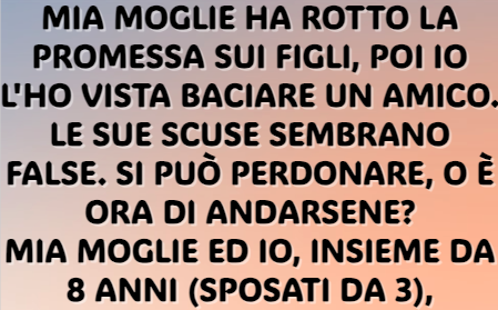 Ora mi trovo di fronte a un dilemma straziante. Una parte di me vorrebbe salvare gli otto anni di storia che abbiamo costruito. L’altra parte, però, guarda alla realtà dei fatti: la rottura di un patto fondamentale sul nostro futuro, un’intimità tradita con un’altra persona e una reazione che sembra mancare di rispetto sincero per me e per il nostro matrimonio.
