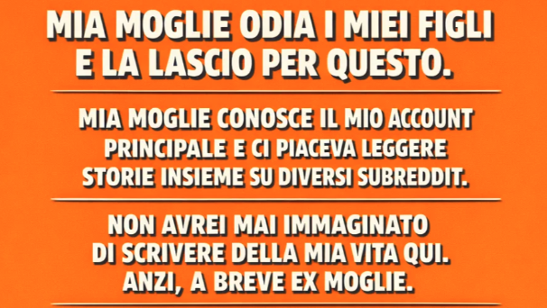 Mia moglie conosce il mio account principale su Reddit. Ci piaceva leggerci storie insieme, esplorando subreddit di ogni genere. Non avrei mai immaginato che sarei finito a scrivere della mia vita proprio qui. O meglio, di ciò che sta per diventare la mia vita: perché a breve quella che racconto sarà, di fatto, la mia ex moglie.