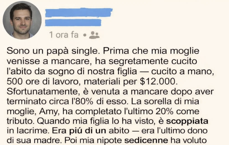 Mia moglie trascorse 500 ore a cucire a mano l’abito da sposa perfetto per nostra figlia. Costò 12.000 dollari e fu il suo ultimo atto d’amore prima di morire. La scorsa settimana, mia nipote sedicenne lo ha distrutto in pochi minuti.