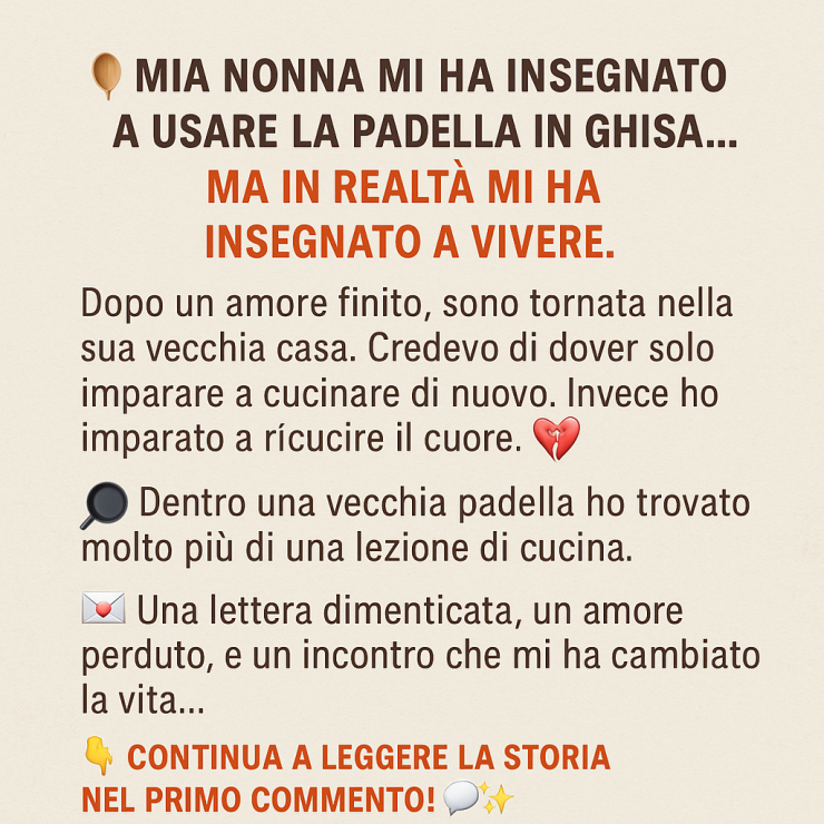 Nonna non mi ha chiesto niente della rottura. Ha solo spinto una tazza di caffè verso di me e ha iniziato a raccontarmi della padella di sua madre, sopravvissuta alla guerra e usata per migliaia di pasti. Mi ha detto: “Se la tratti bene, dura per sempre. Come il cuore.”