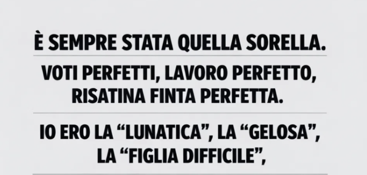 È sempre stata quella sorella. Voti perfetti, lavoro perfetto, risatina finta perfetta. Io ero la “lunatica”, la “gelosa”, la “figlia difficile”. Lei promossa? Cena dei genitori. Io sposata? Appena presenti. Ho smesso di invitarla. Niente drammi. Solo confini. Quest’anno, festa compleanno marito – niente di che, amici stretti, piatto preferito, torta fatta da me in quattro ore da zero. E indovinate chi entra con 40 minuti di ritardo, come padrona di casa?