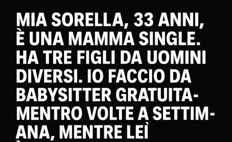 Mia sorella ha 33 anni ed è madre single. Ha tre figli da uomini diversi. Io li babysitto gratis quattro volte a settimana mentre lei è impegnata col lavoro.