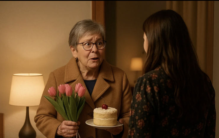 Aprii. E lì c’era lei — Margaret, impeccabile come sempre, con un mazzo di rose bianche e una torta in un contenitore di plastica. Il suo sorriso era quella stessa dolcezza forzata che ricordavo bene.