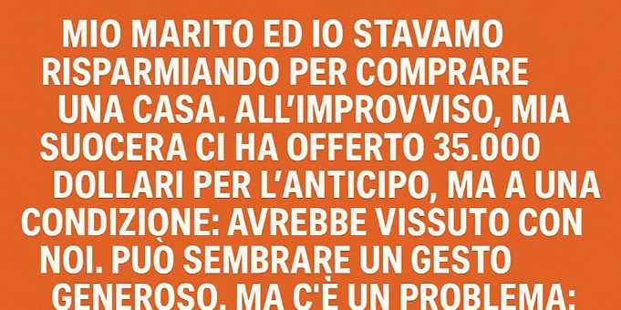 Mio marito ed io stavamo risparmiando per comprare una casa. All’improvviso, mia suocera ci ha offerto 35.000 dollari per l’anticipo, ma a una condizione: avrebbe vissuto con noi.